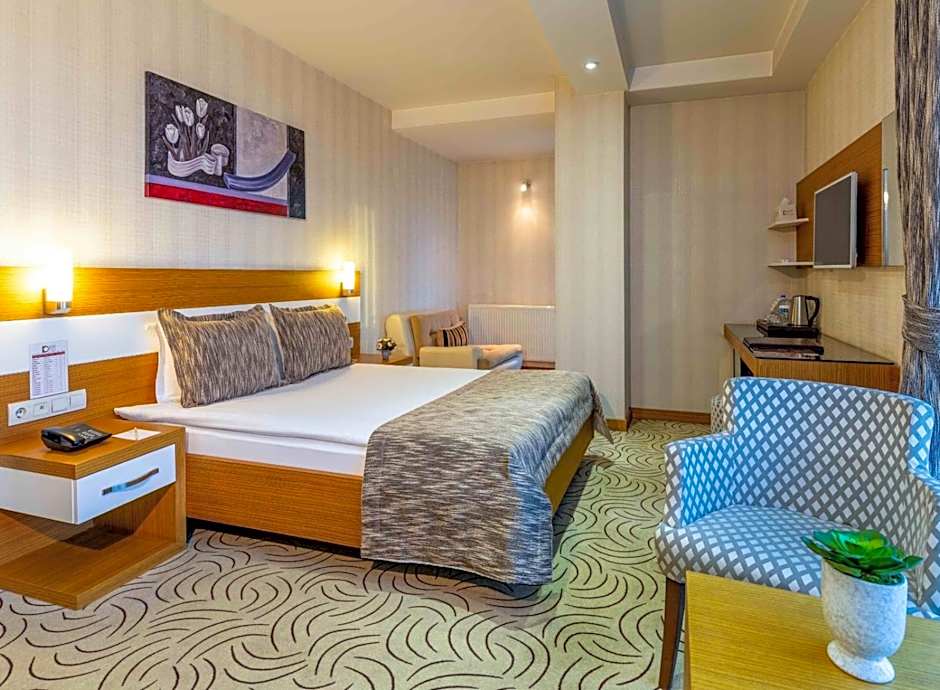 Elegantly decorated, this room includes 3D LED TV with 3D glasses, satellite channels, electronic safe box, an electric kettle with free tea and coffee set-up, and a mini-bar filled with drinks. The bathroom comes with free toiletries.